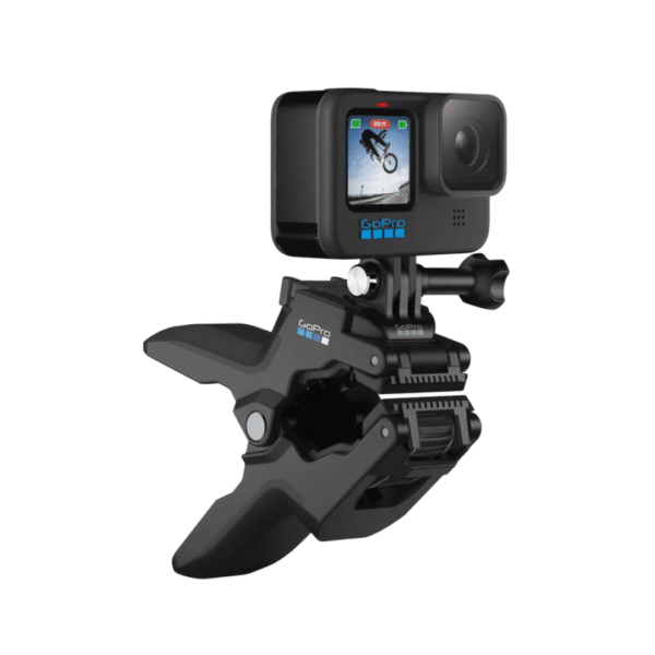 Acopla la GoPro a cualquier objeto de un tamaño comprendido entre 0,6 y 5 cm de diámetro. Fija tu cámara directamente a la abrazadera para obtener un montaje de perfil bajo (1 caso), o utiliza el anillo opcional para conseguir una mayor variedad en el ajuste del ángulo de la cámara. El soporte Jaws se agarra firmemente a formas irregulares y objetos muy delgados gracias a su diseño innovador.