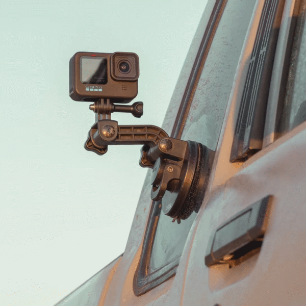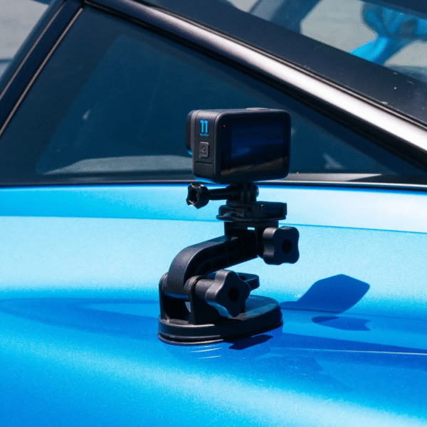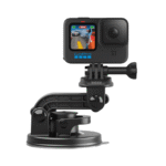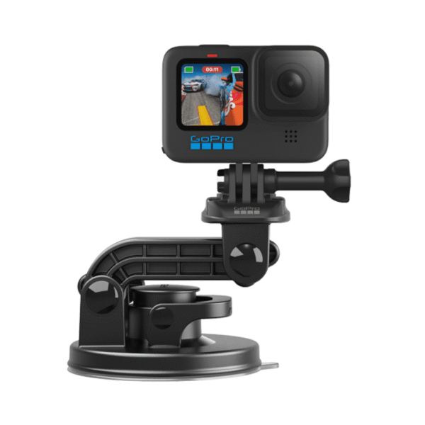 Fija la GoPro a coches, barcos, motos y otros vehículos. El soporte de ventosa de resistencia industrial se ha probado a velocidades de más de 240 km/h y está diseñado para asegurar la estabilidad y una gran libertad de movimiento. Los brazos ajustables permiten un montaje ultracompacto. Incluye una base estándar y una base de apertura rápida para moverlo cómodamente entre capturas y ubicaciones. Para obtener la fuerza máxima de sujeción, fíjalo a una superficie limpia.