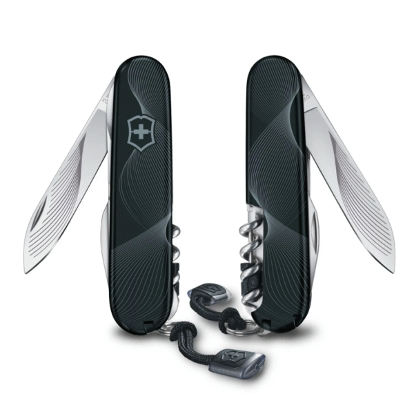 Expresa tu cariño con esta exclusiva navaja de bolsillo VICTORINOX COMPACT DARK WAVE EXCLUSIVE EDITION 2024. Su distintivo diseño de hoja y carcasas se complementan con una calidad inquebrantable. Equipada con 16 prácticas funciones para el uso diario, incluido un mini-destornillador, un bolígrafo de presión negro y un cordón a juego, es un regalo magistral para una ocasión especial.